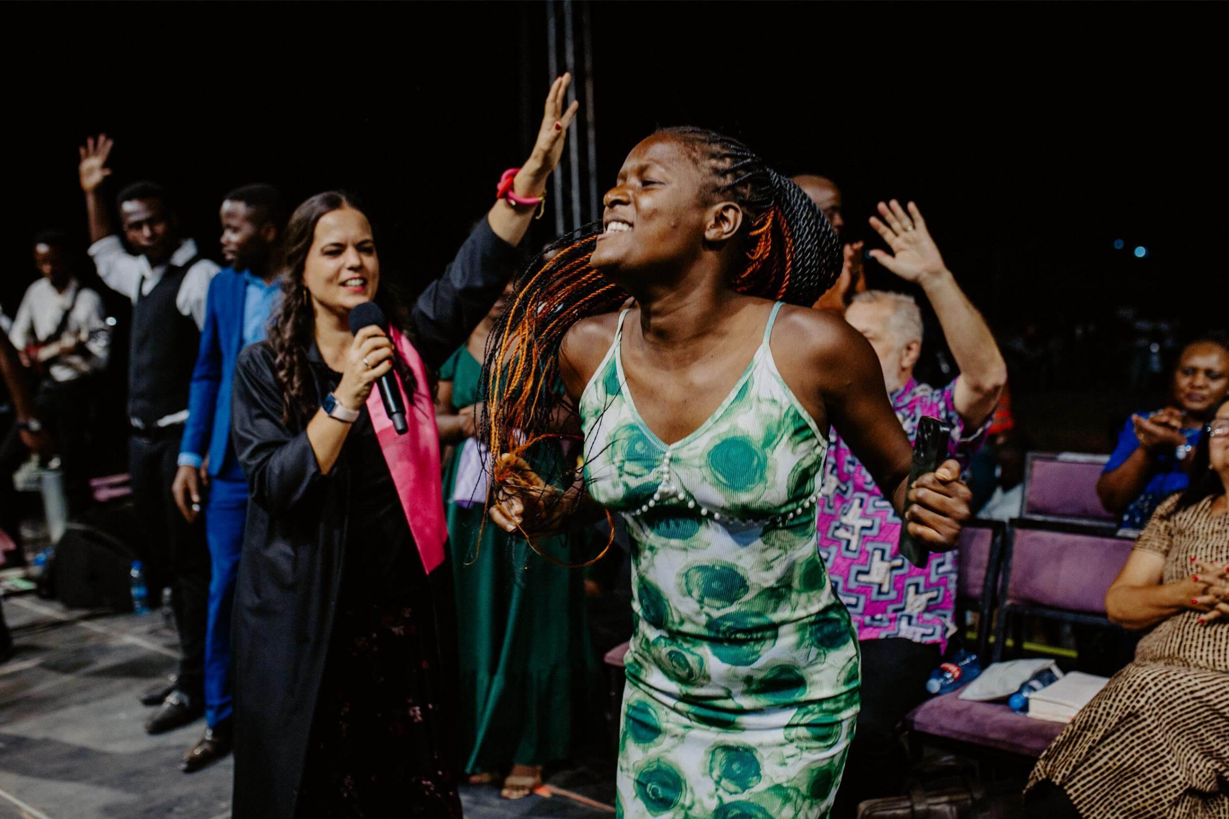 Gracious Chileshie broke her leg two years ago and was in so much pain. She was unable to jump. After receiving her healing, she demonstrated joyfully by jumping freely on stage.