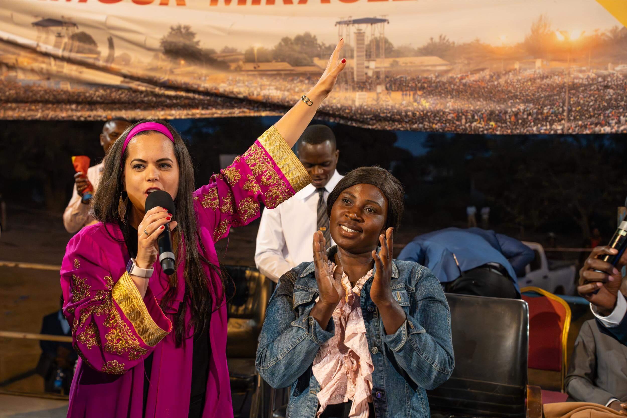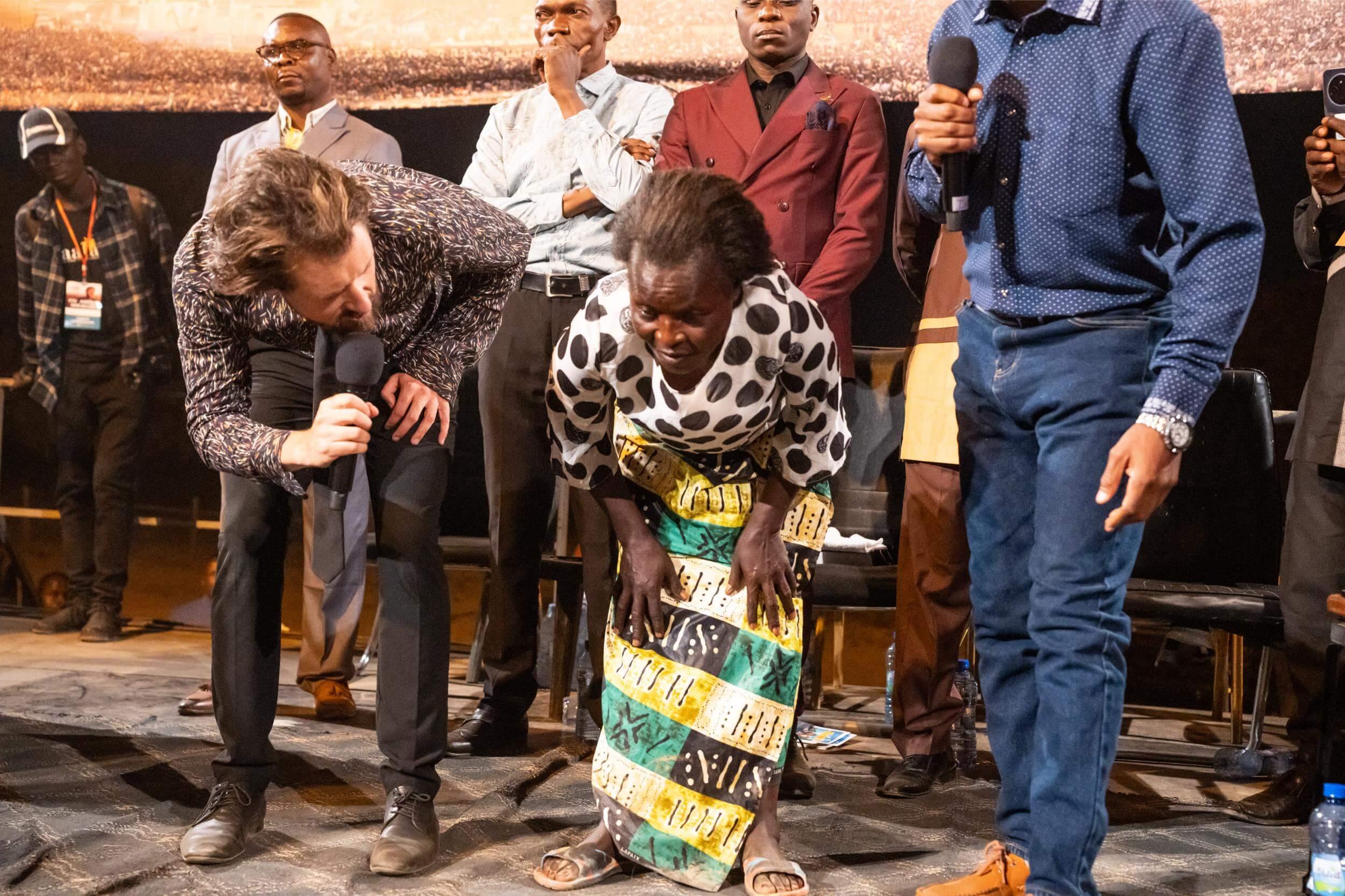 Mama Anastazia had been unable to stretch her back or walk long distances for three years. But today, during prayer, she received her miracle! On the stage Evangelist Jana had her confirm the testimony by bending down. She was pain-free.