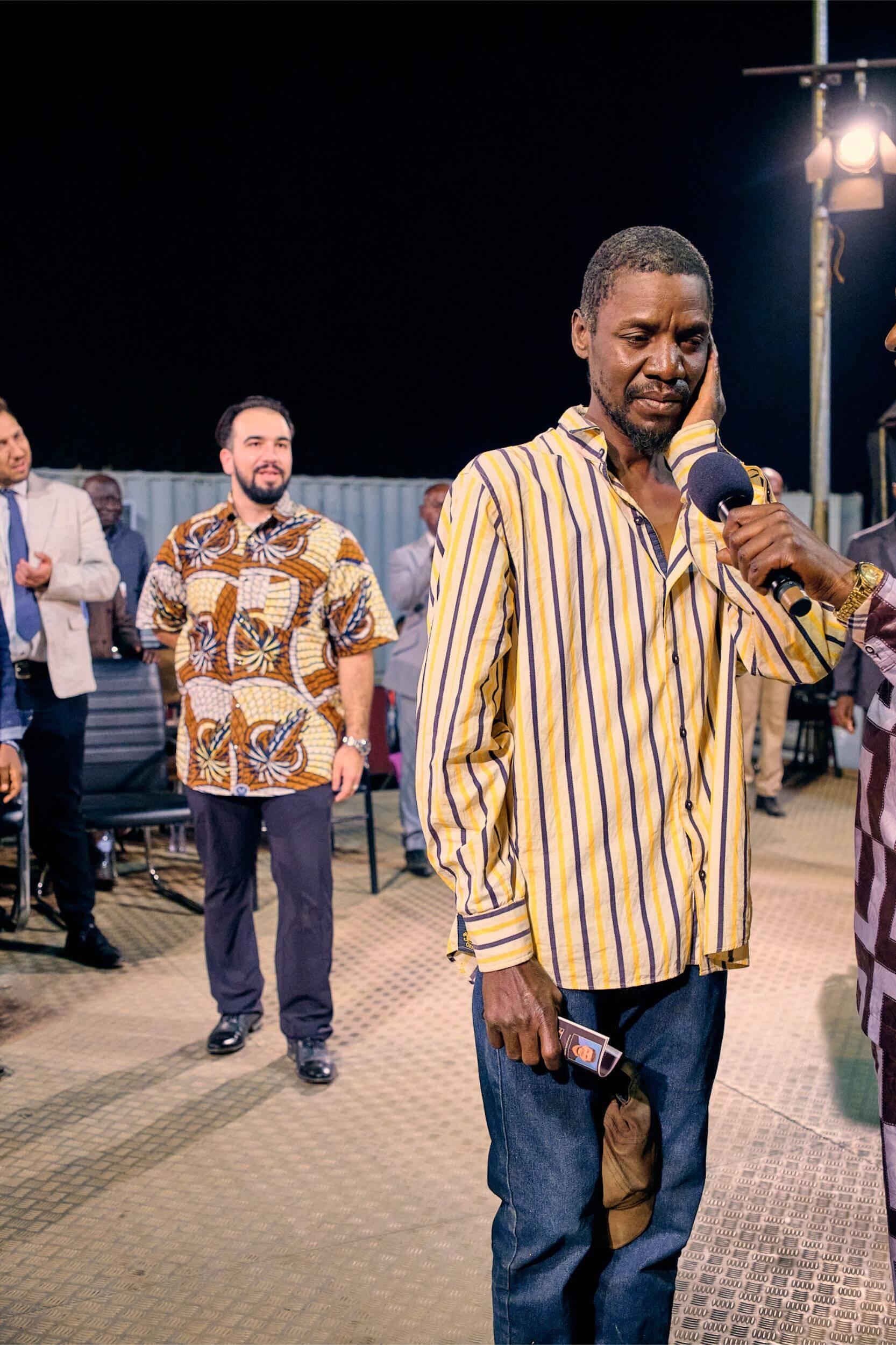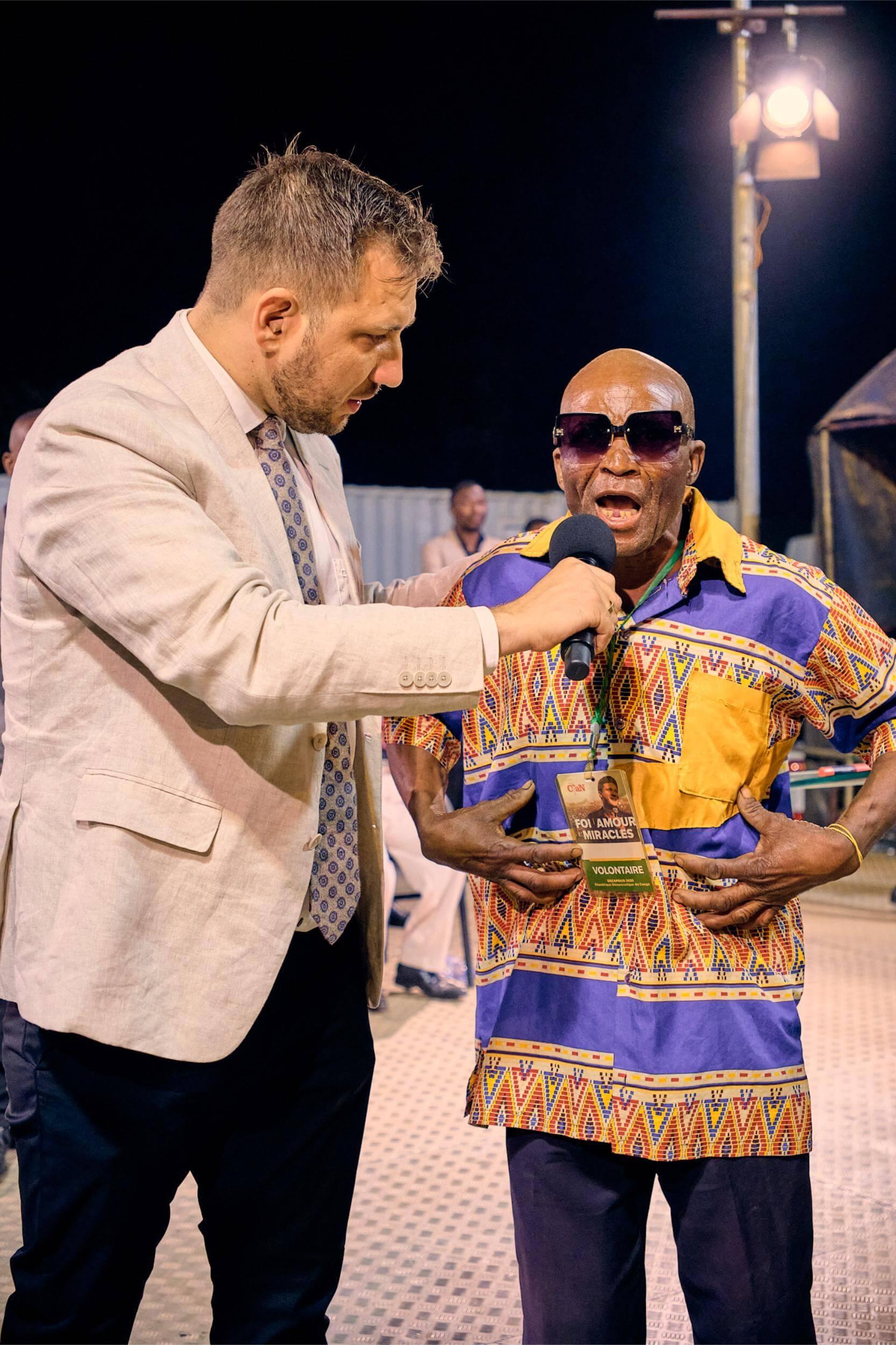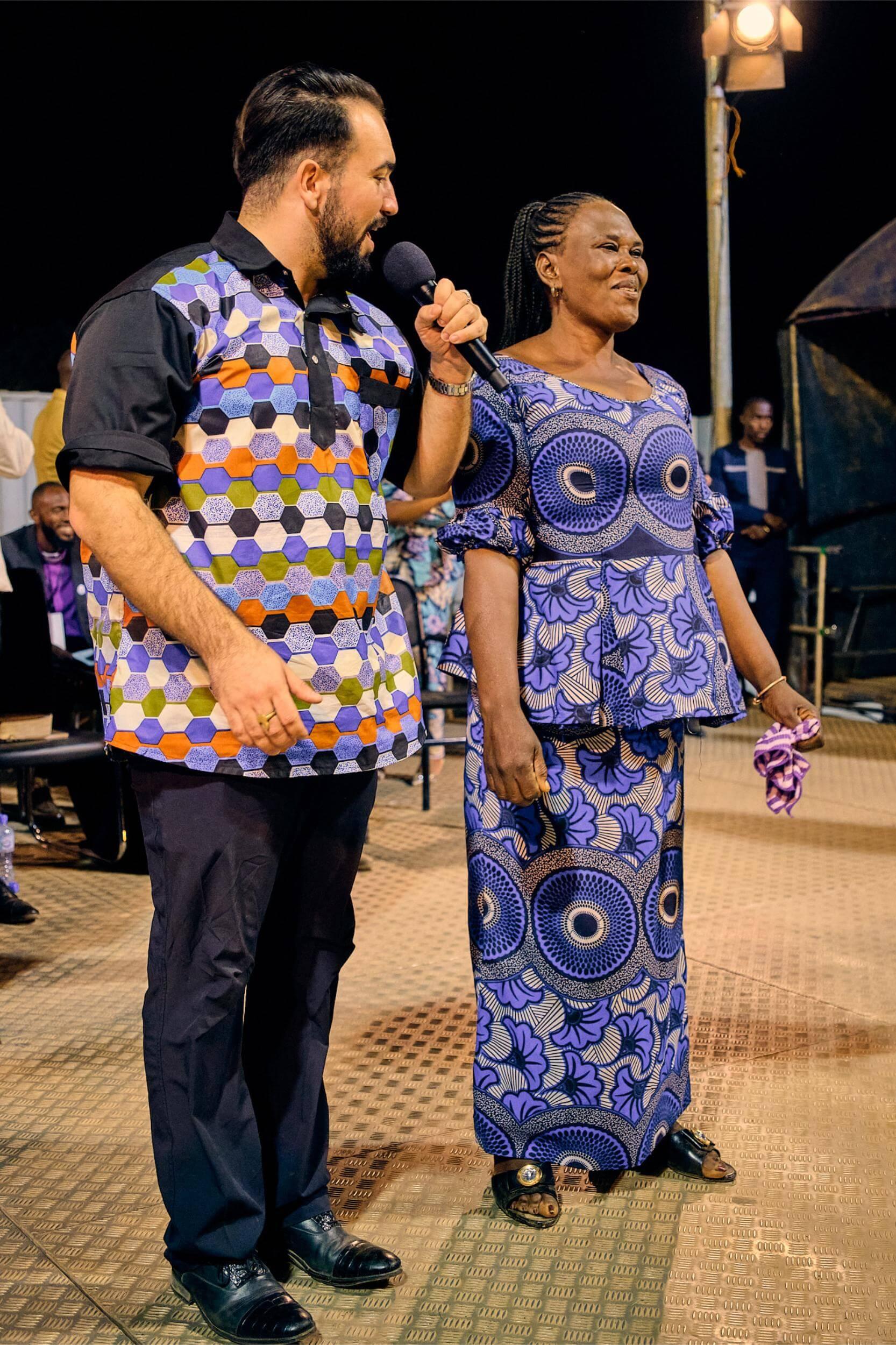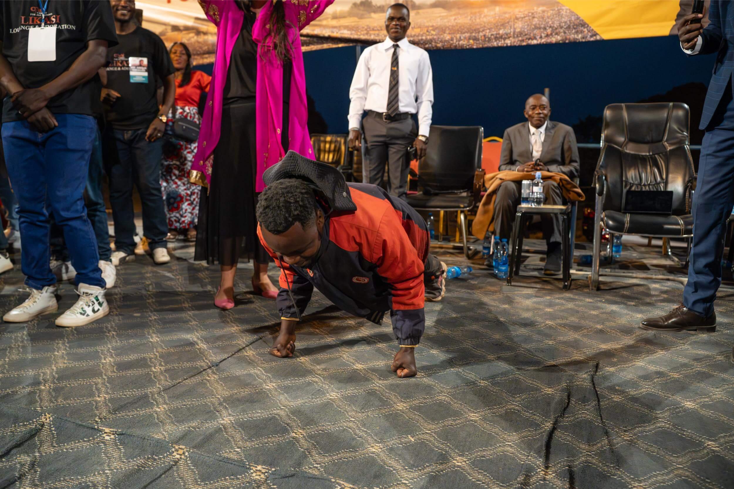 For nearly ten years, Exaucé suffered from sharp, persistent pain in his left leg. During the prayer for the sick, he experienced a powerful touch from God. The pain instantly vanished, and in an incredible moment of joy and freedom, Exaucé ran across the stage, pain-free for the first time in years! As the crowd erupted in praise, Exaucé burst into tears. Evangelist Dario had to catch him as he collapsed, shaking under the overwhelming emotion of this miracle.