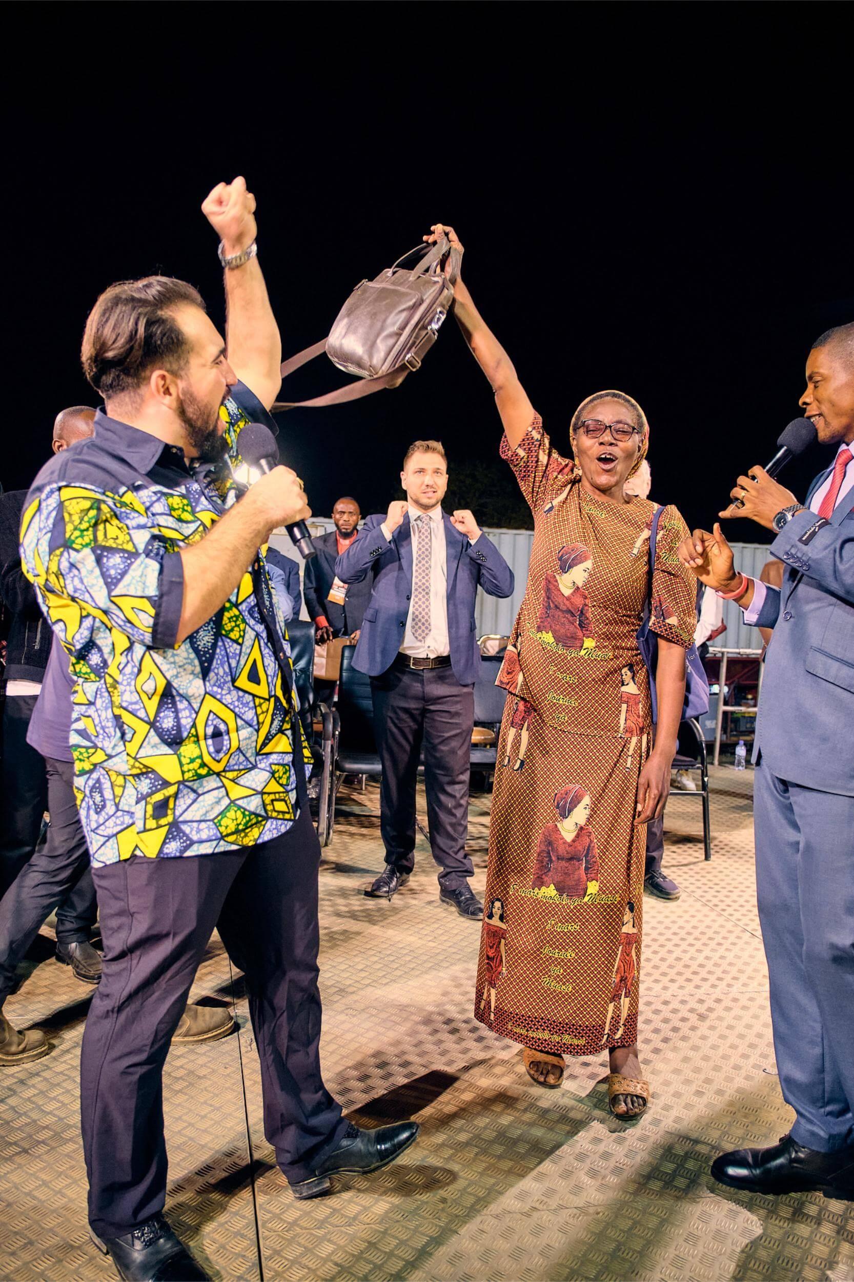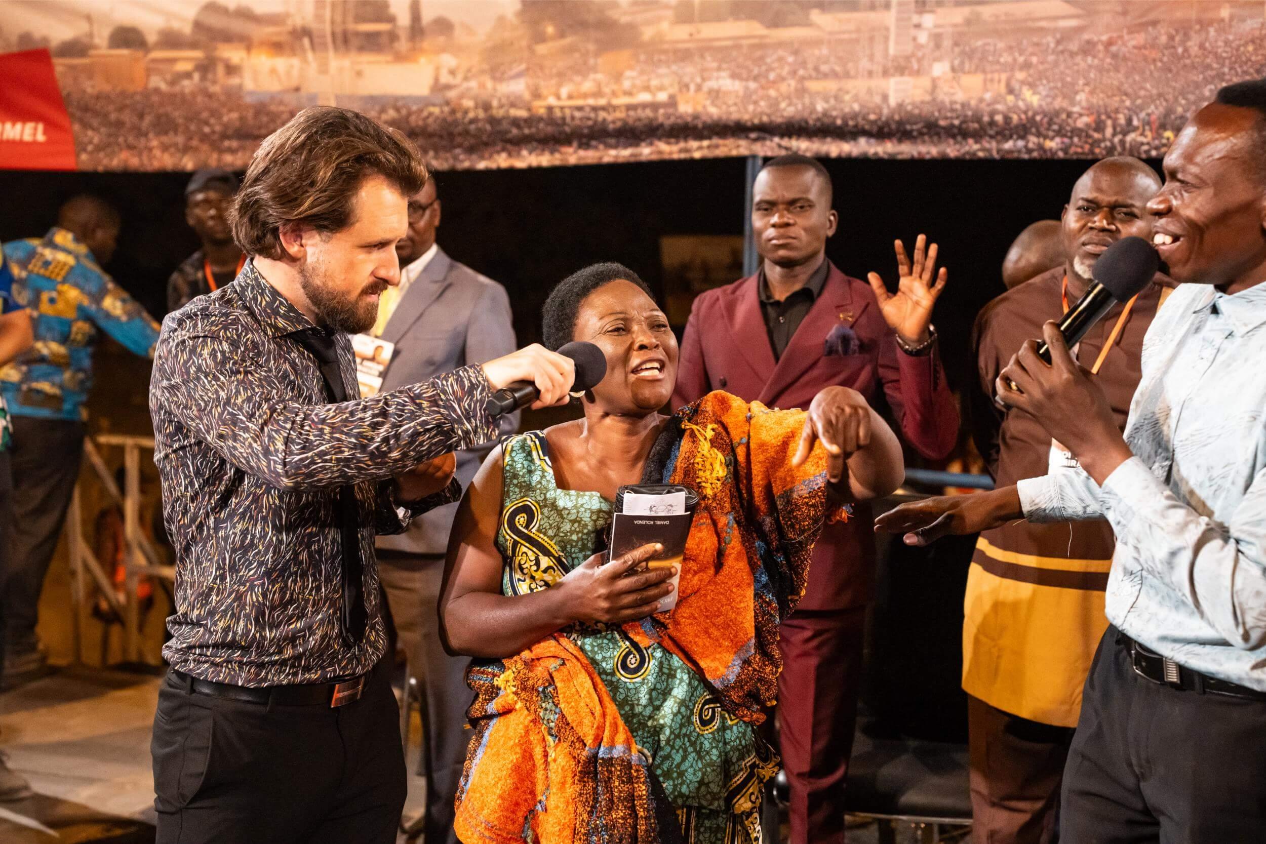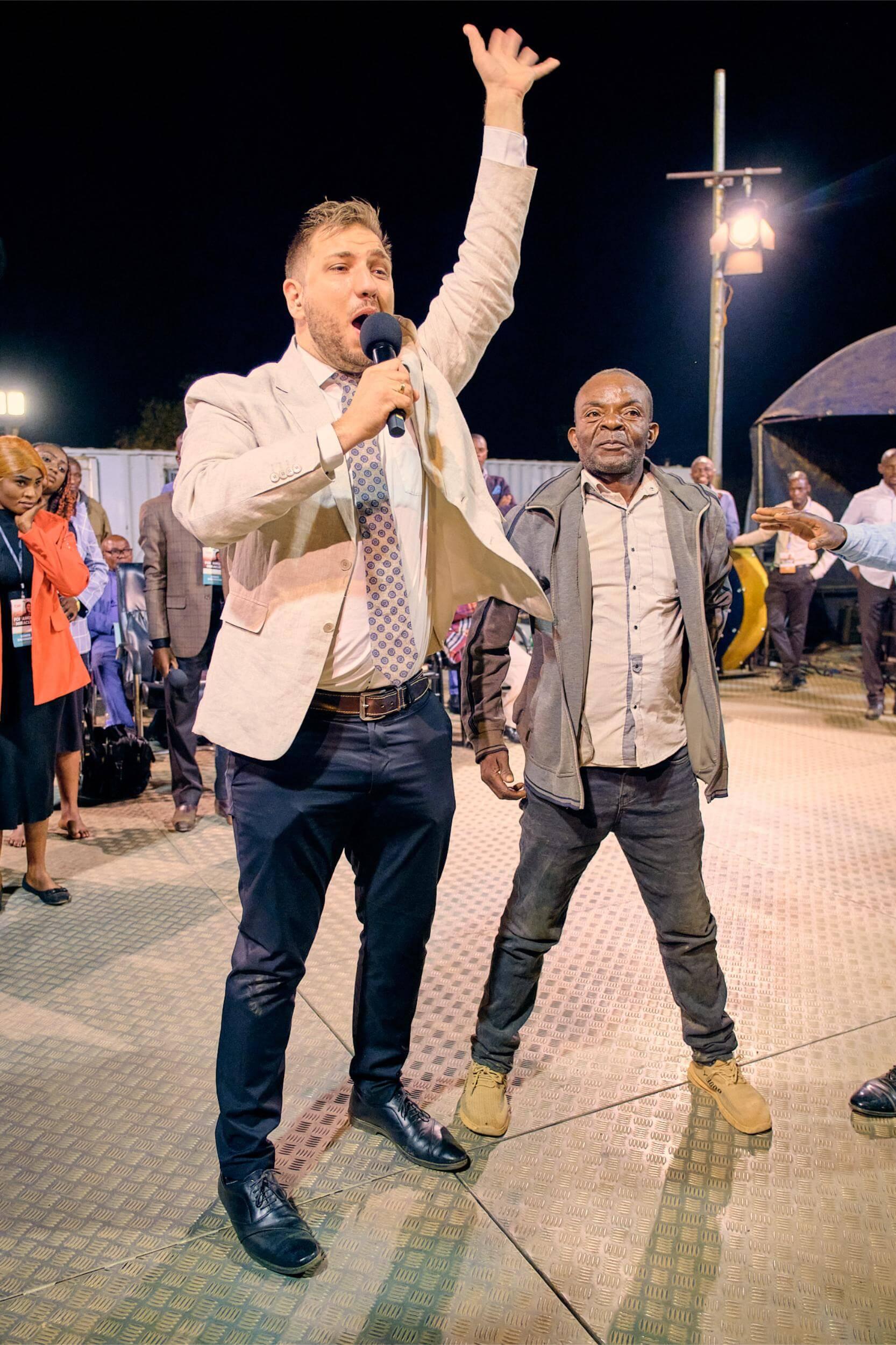 David Rotärmel: As I stood on the side of the stage, looking over the crowd, I saw an older lady jumping up and down. From afar you could see, something has happened, and she most likely just received a mighty miracle. Then she came to the side of the stage to testify. Mama Africa had severe stomach pain that made it impossible for her to walk upright. During the prayer, she received complete healing. On the stage Mama Africa was able to bend, she was able to walk upright and even danced on the stage demonstrating that she is now completely pain free.