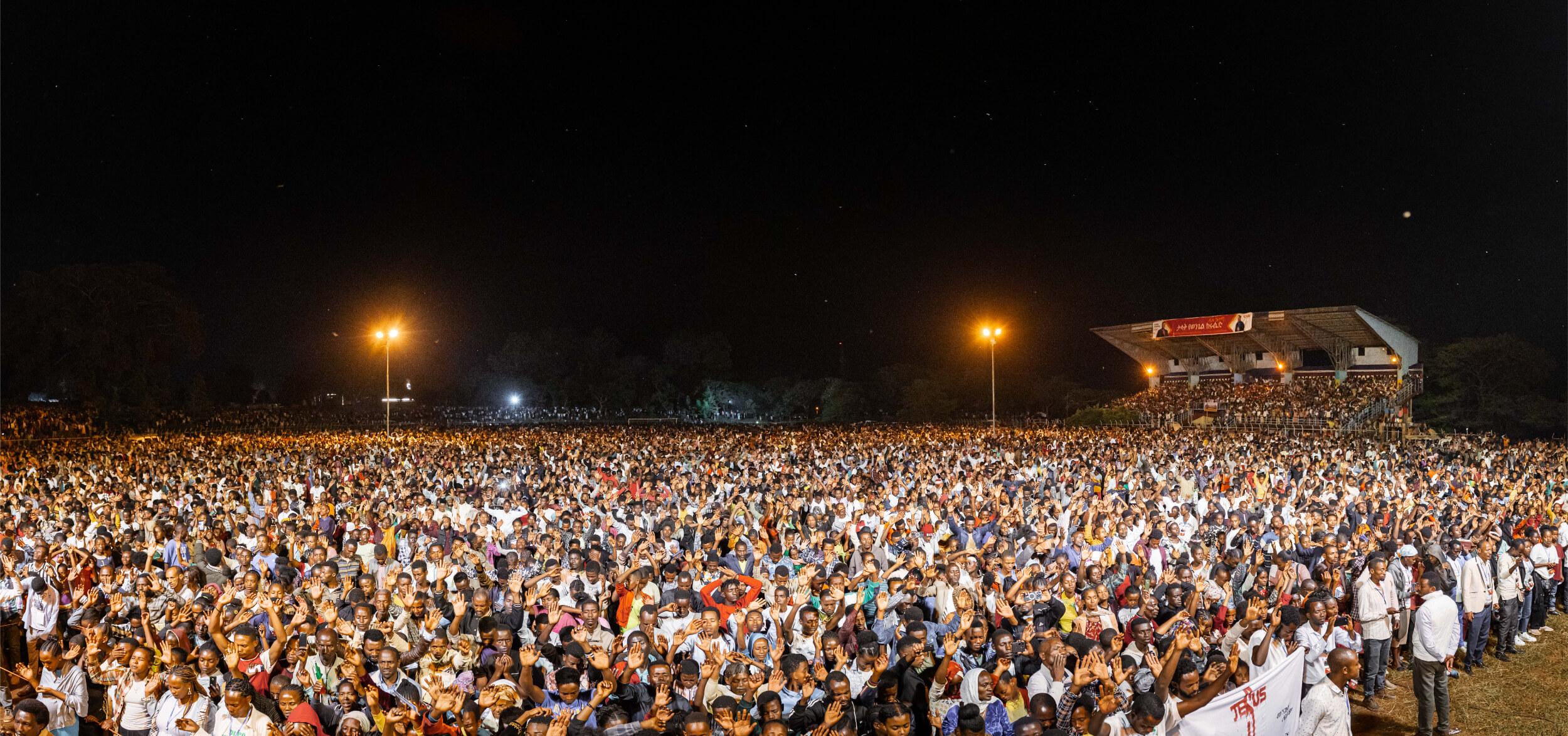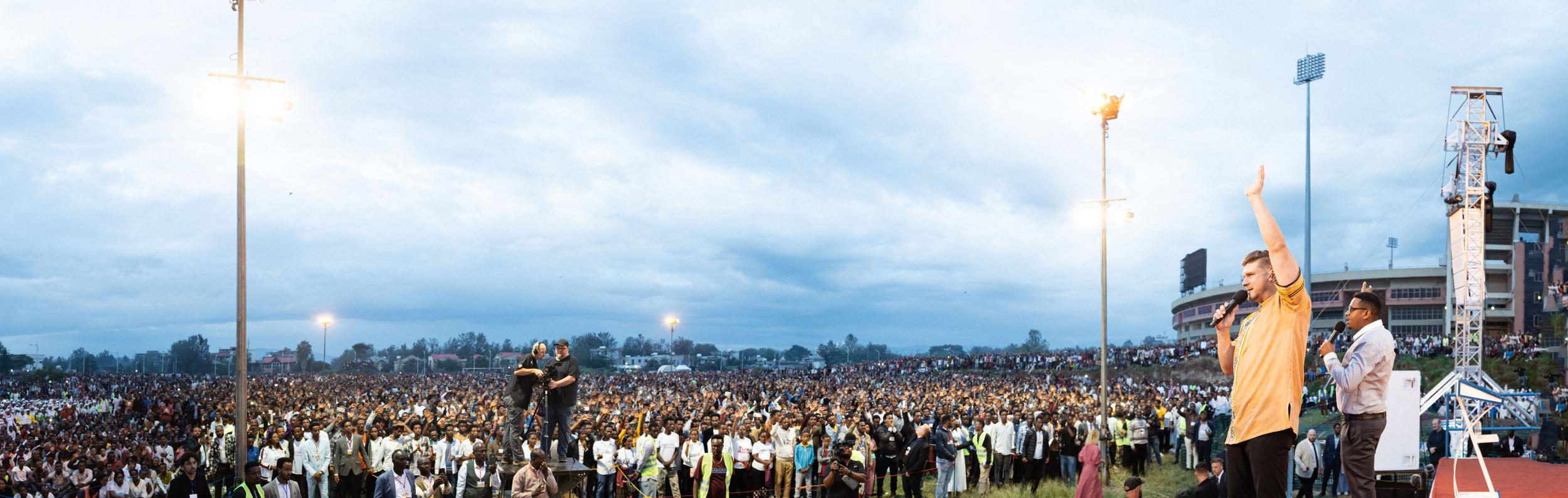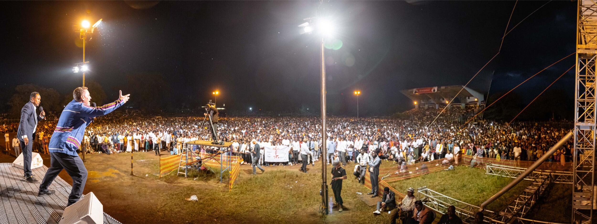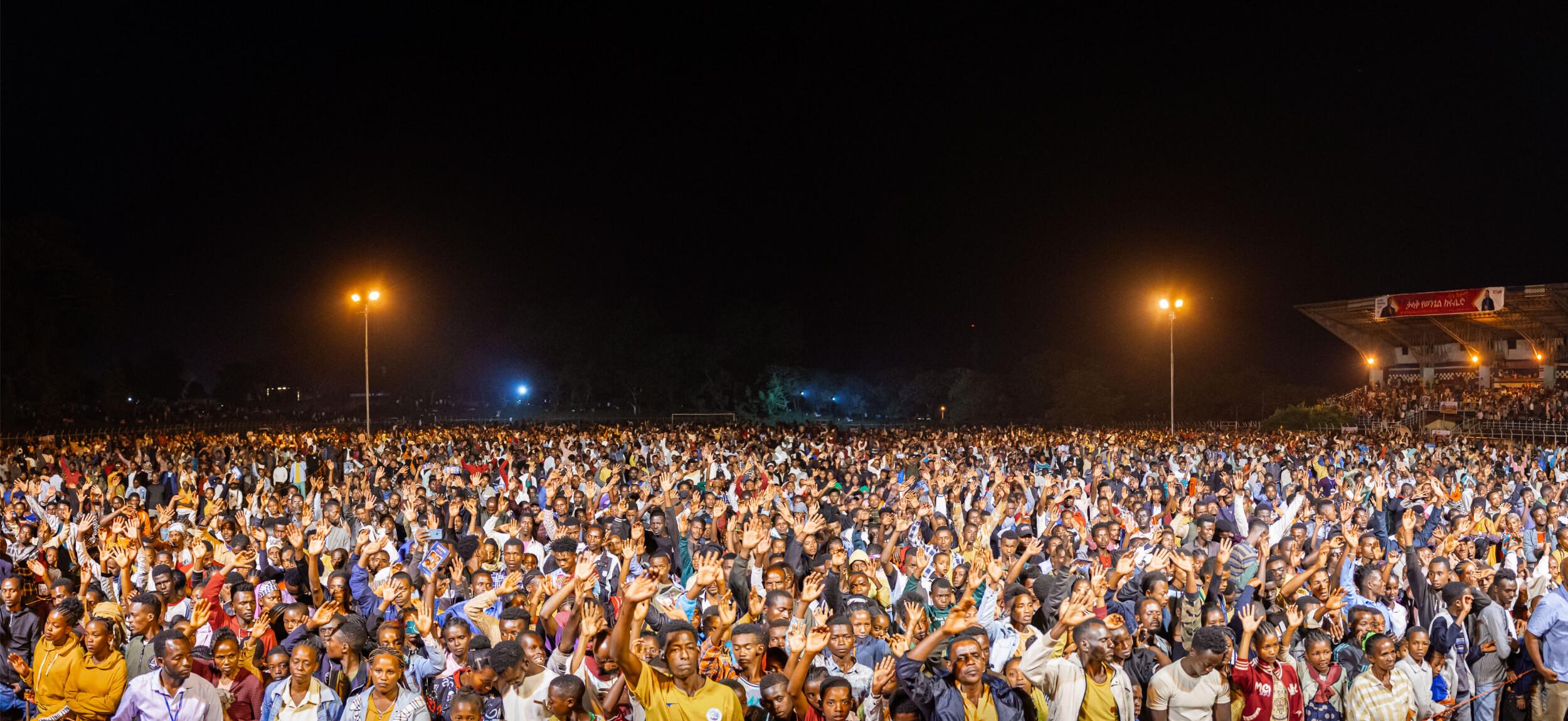 The first night of our crusades in Ethiopia has just ended, marking another step in our historic initiative. As we near our 50th anniversary, we’re pressing into God’s promises and witnessing something extraordinary. So far, we’ve completed 33 of the 50 planned crusades, with 17 left – 9 of which will take place in Ethiopia in the coming weeks.
