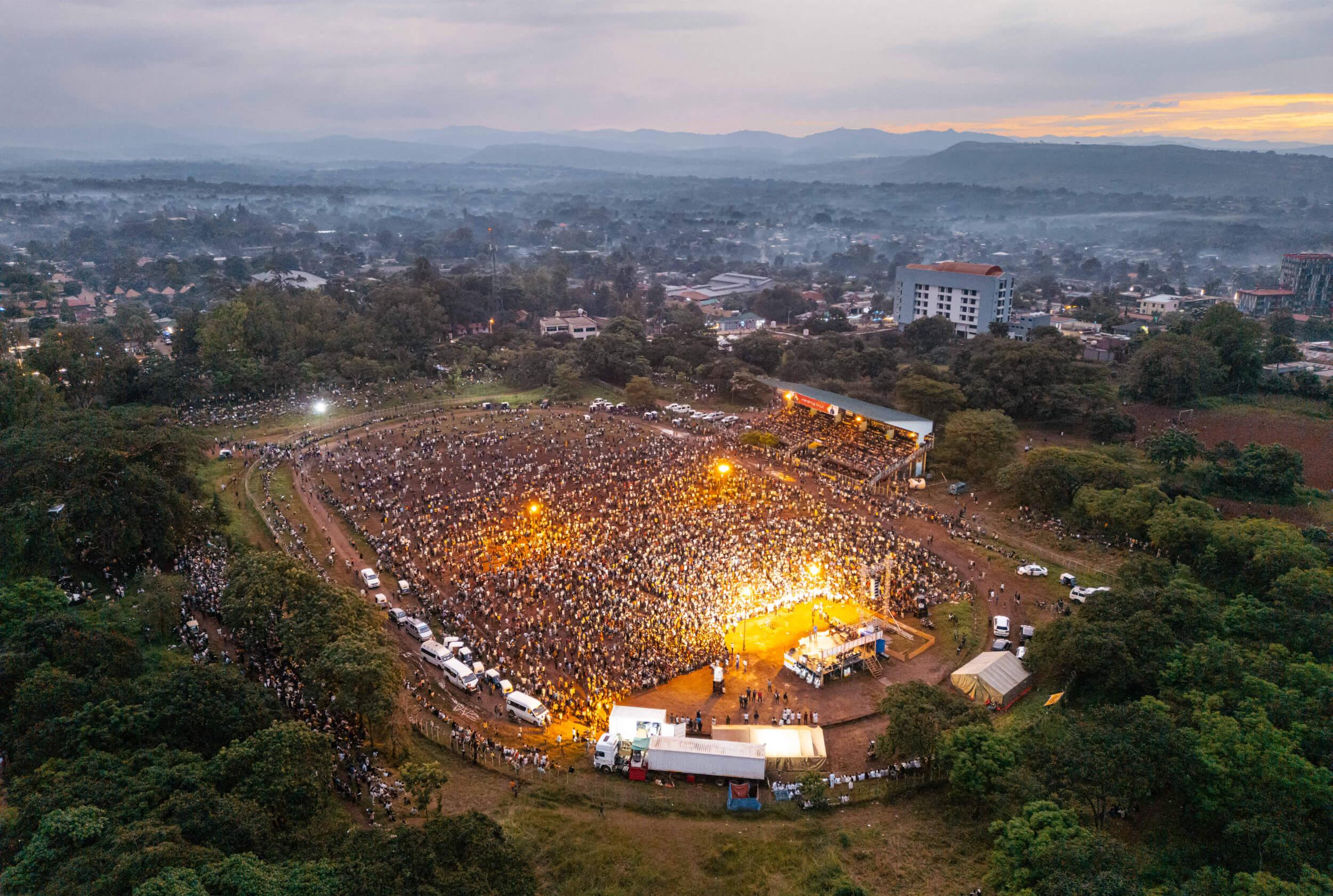 Tonight, I wrapped up the week in Dilla, where the weather forecast threatened solid rain all afternoon and evening. We prayed, and in what can only be described as a miracle, the rain clouds cleared, and we arrived to find the field packed to capacity – even the stands and hills on the outskirts were full!