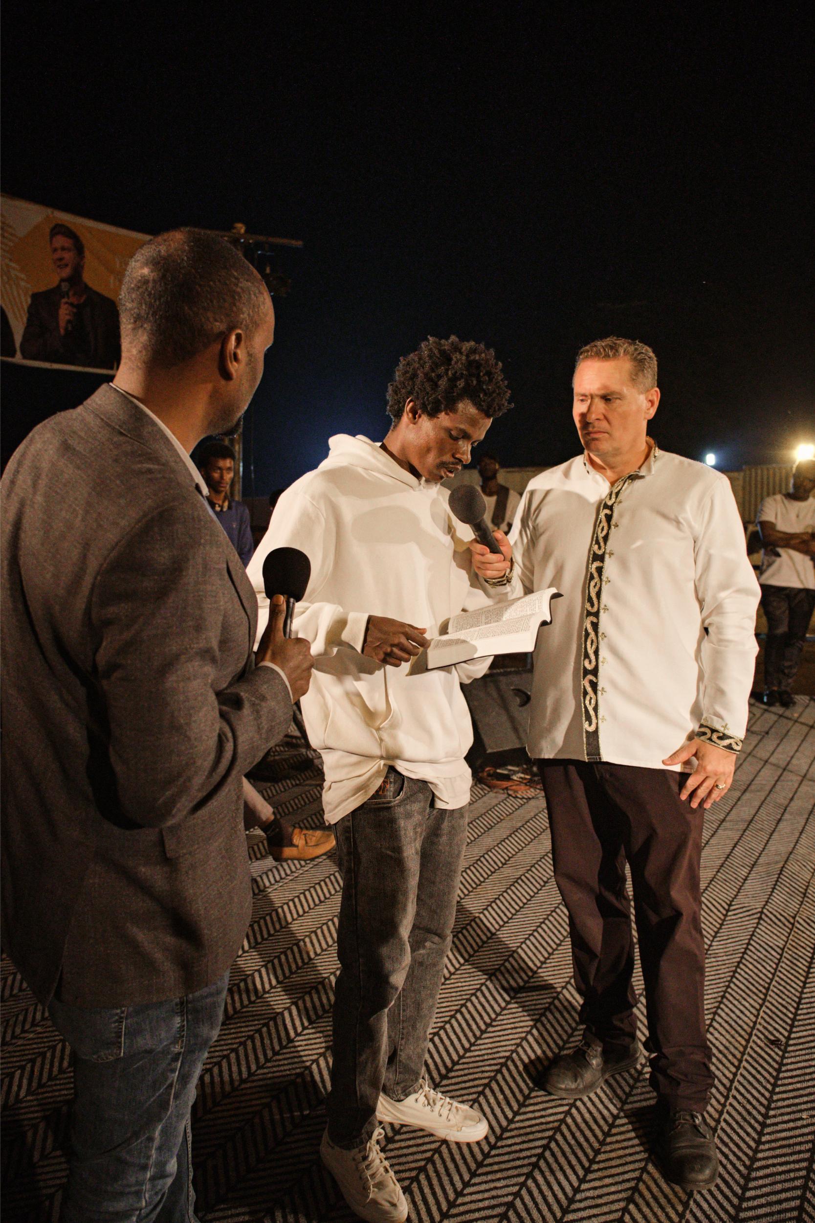 In a beautiful moment, a Muslim woman brought her son, Bobo, who had never spoken a word, to the platform. Tonight, in front of thousands, Bobo said his first words: “1, 2, 3” and “Jesus.” The crowd erupted in praise as his mother fell to her knees, tears streaming down her face, declaring that it was Jesus who healed her son. And that was just the beginning – many other wonderful testimonies followed.