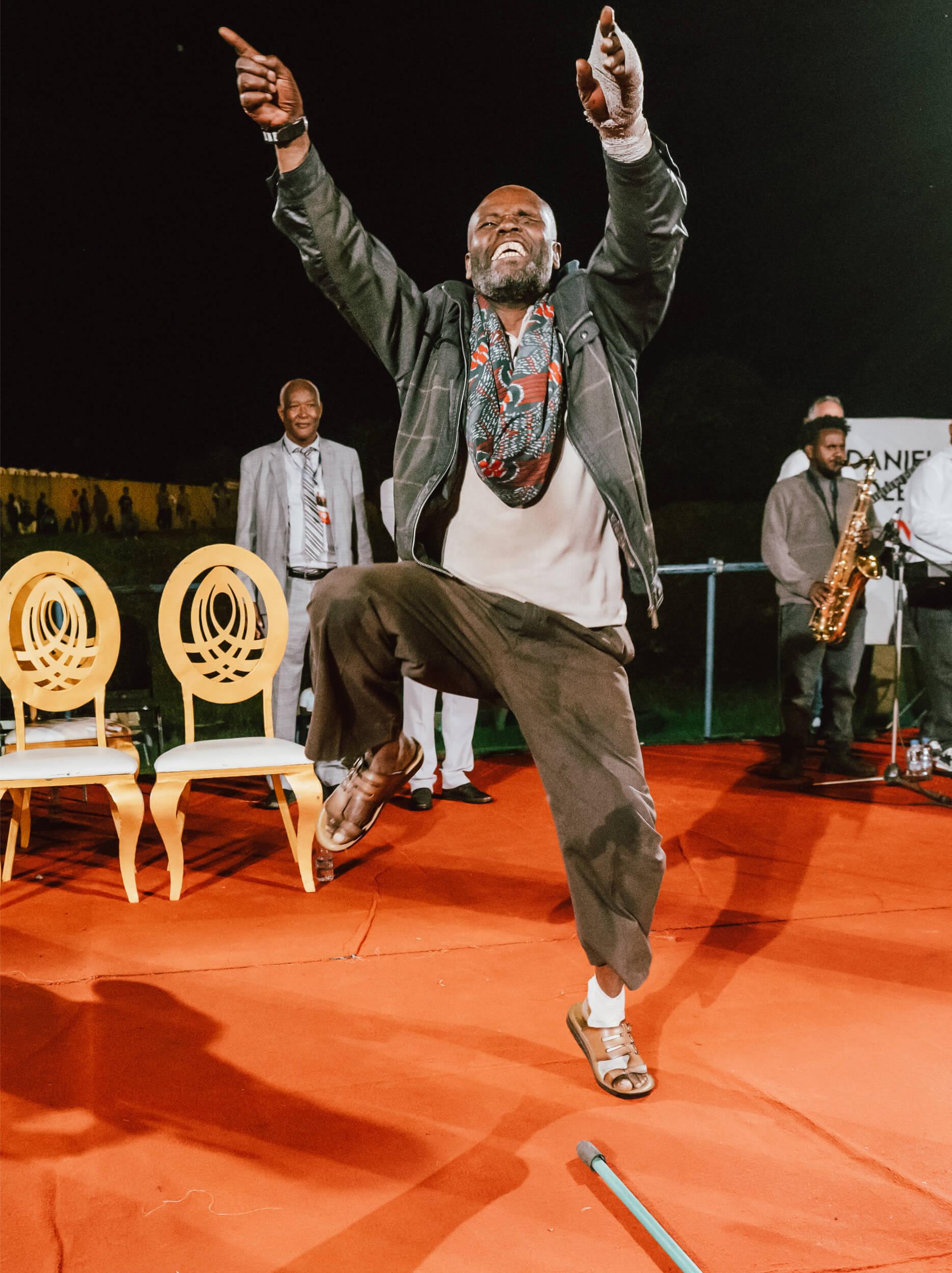 Deme, a soldier with a gunshot injury who couldn’t bend his knees for 7 years, was healed! He left walking and jumping, pain-free.