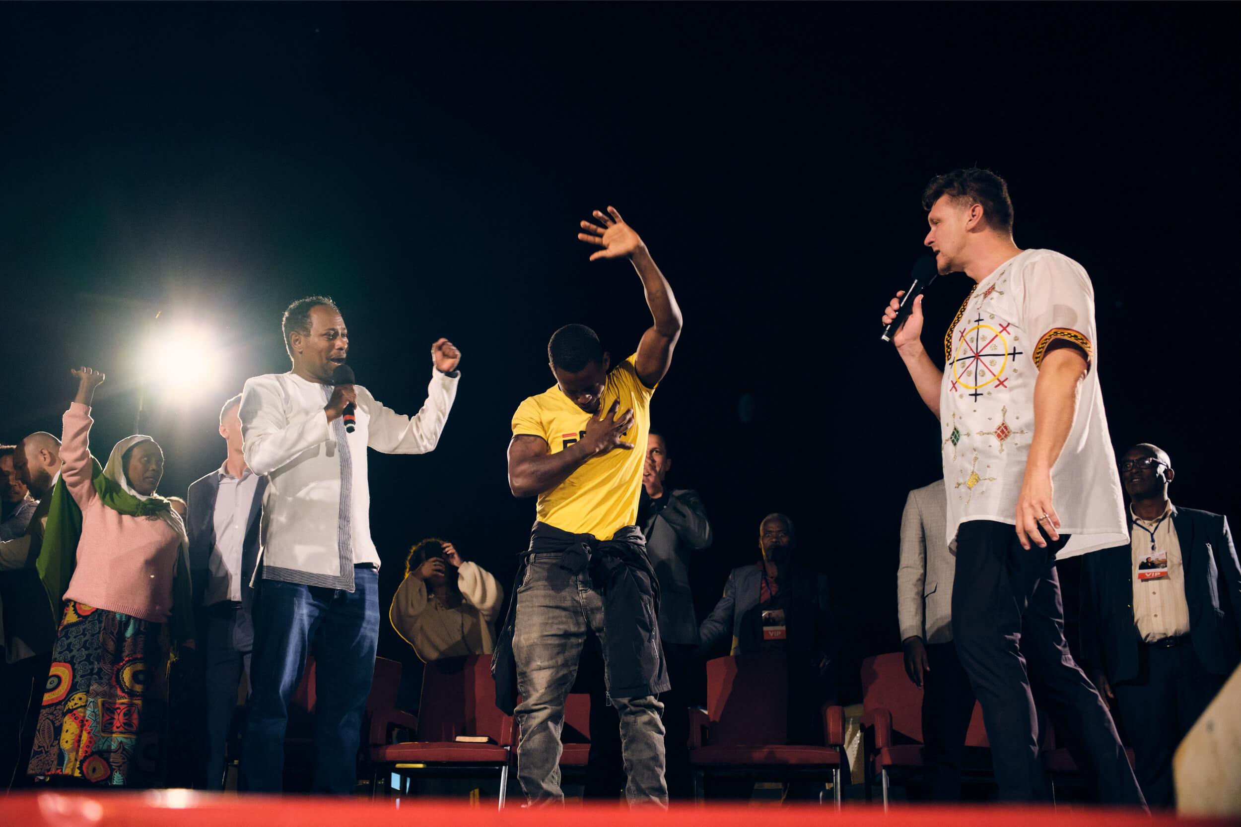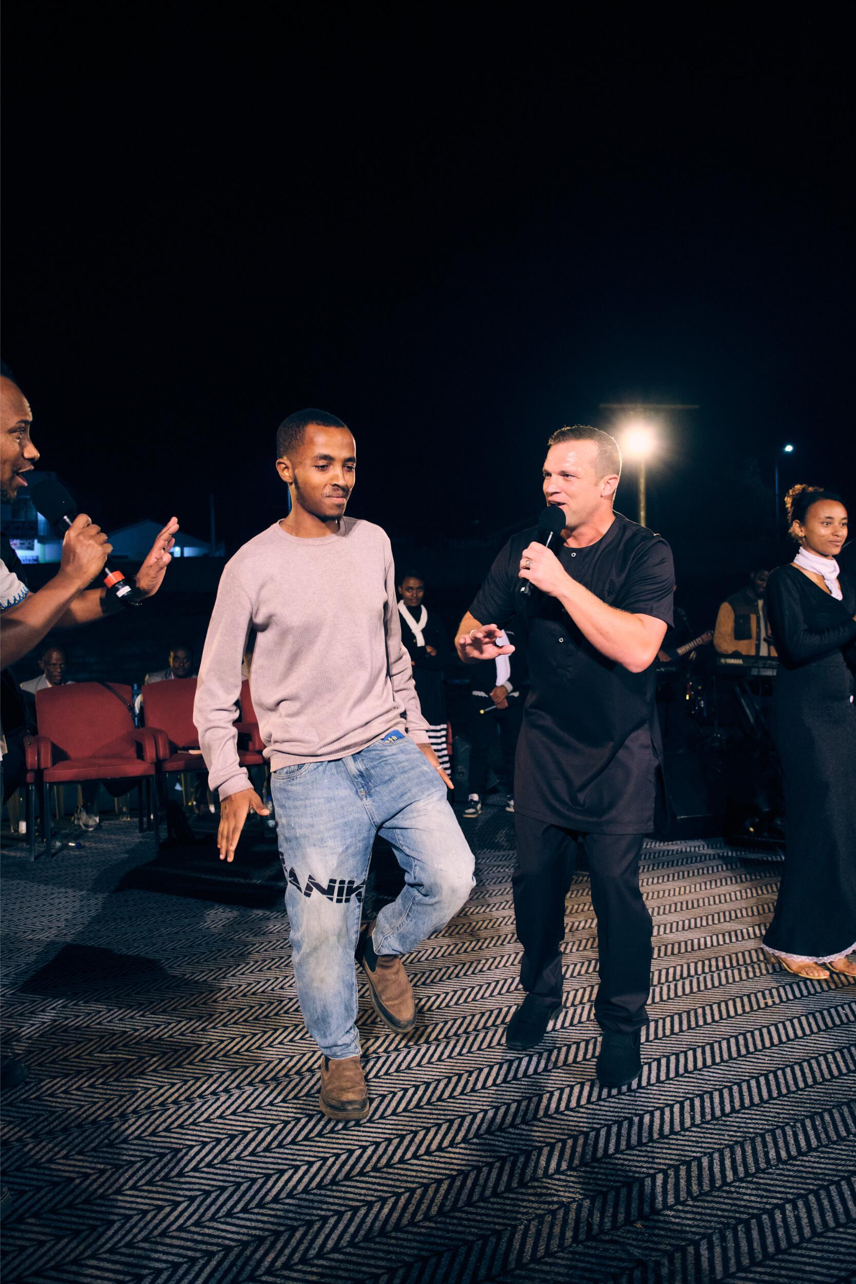 Meanwhile In Sodo, as Joe Turnbull prayed for the Holy Spirit to move, a young boy near the front, crying out to the Lord, suddenly collapsed. When he stood, the infected leg he had battled for two years was completely healed. Overwhelmed, he ran to the stage with his sister, both in awe of what the Lord had done.