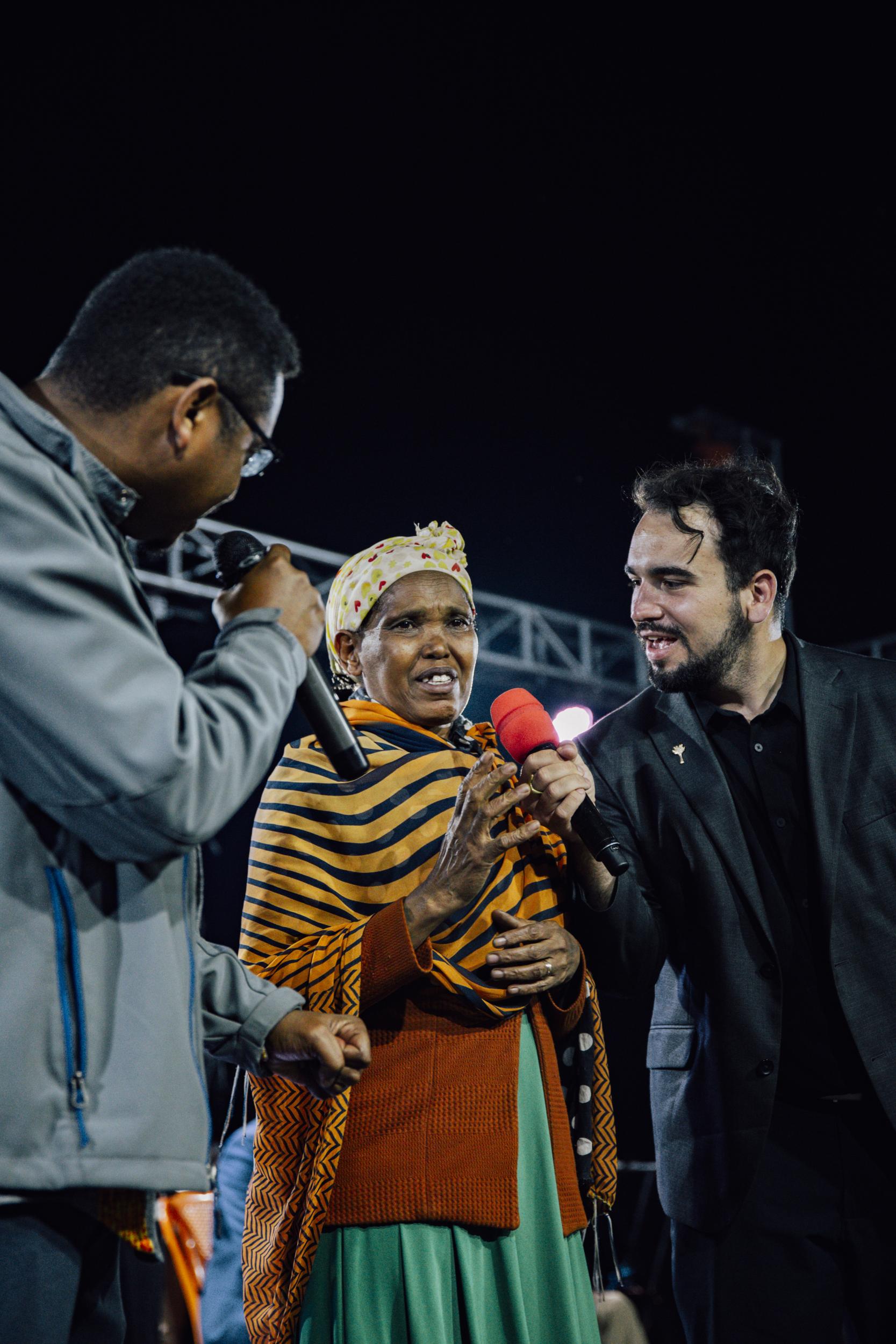 Beture could not lift his left arm for over a year. He and his entire school attended the crusade. It was beautiful to see his classmates cheering him on, testifying to what Jesus had done for him. As we were testing his arm, he took a heavy bag full of technical gear and surprisingly threw it into the air, catching it again! Then he started to run circles on stage, lifting the backpack, which was about half his body size! The people were cheering and celebrating the Lord!