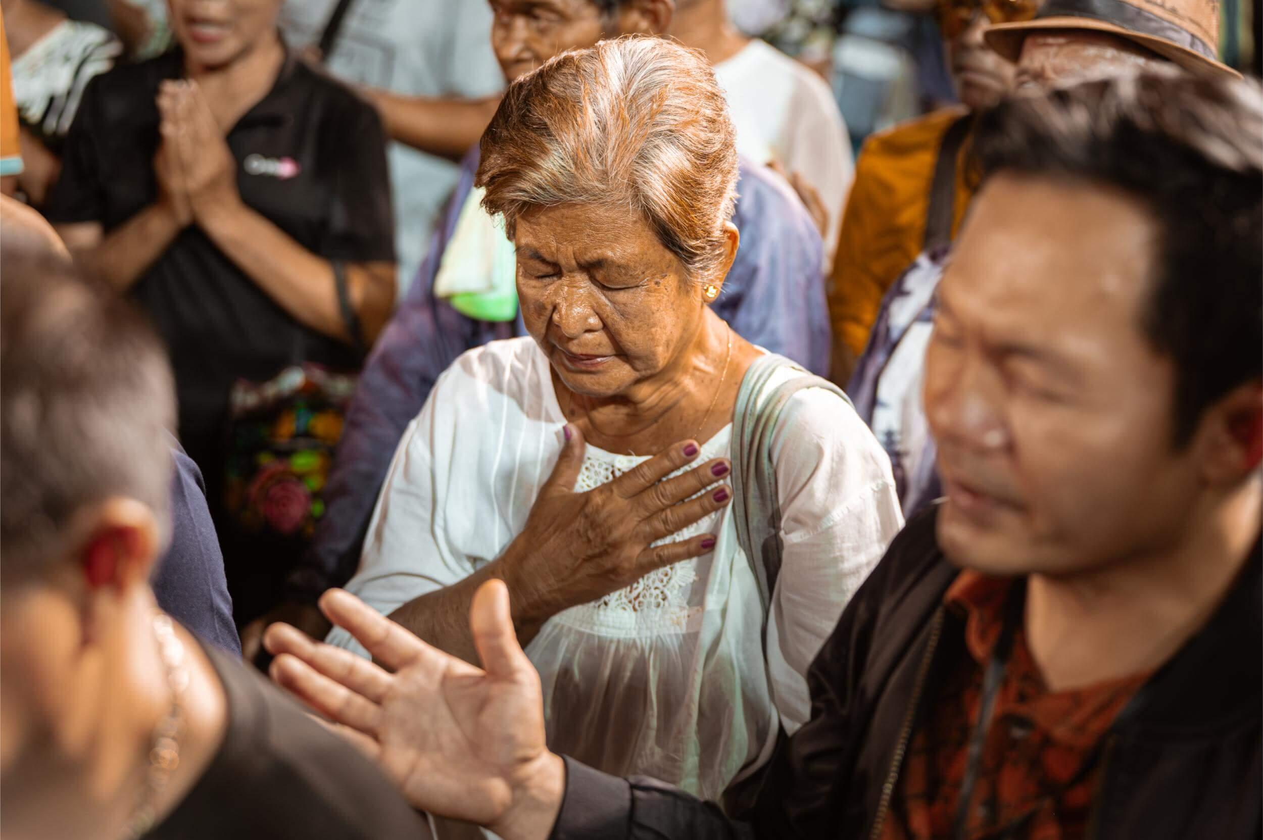 Another testimony we received that night was of a lady named Yay Bunrot. When we asked her what was wrong in her body, she said both of her eyes were blind, with the right eye being completely blind, and the left partially so. But now, she was claiming she could see perfectly! Though she had already exhibited her healing by telling everyone how handsome I was in the microphone (that really happened, ha ha!), I decided to still test it on stage. I stood farther away, holding up finger numbers for her to call out. I had her cover the left eye and use only the right eye, formerly completely blind. With each test, she could see the number clearly and called it out to the crowd.
