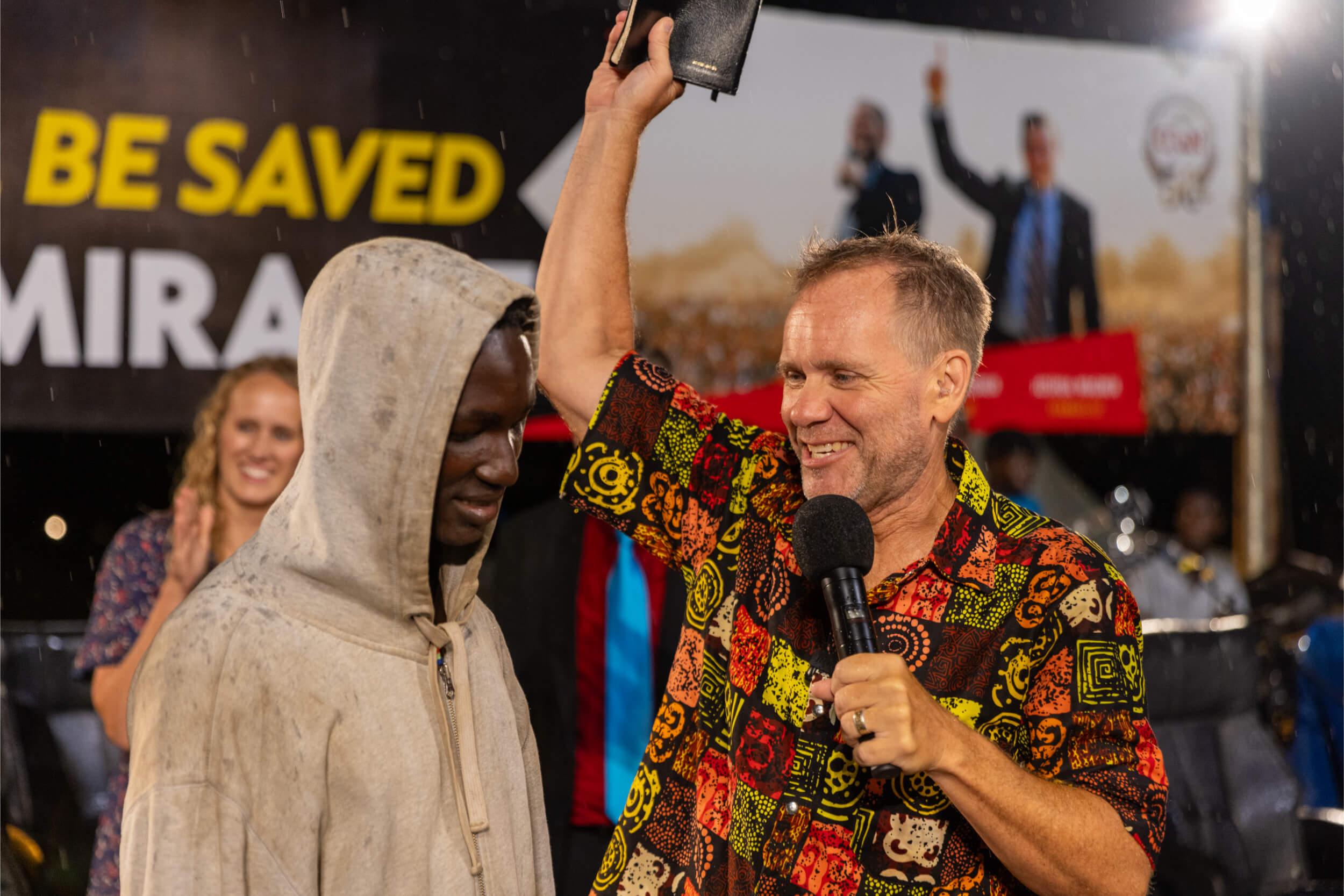 From the city of Iganga, Evangelist Gary Smith shared a joyful update: "The joy of the Lord is your strength! Tonight, the joy of the Lord enveloped Iganga so profoundly that I could barely preach. One of our CfaN technical team members even grabbed a microphone to join in singing 'I've got the Joy, Joy, down in my heart.' The crowd was so energized, dancing kicked up dust, filling the air as their joy, unspeakable and full of glory, echoed throughout the atmosphere. When asked if they had ever experienced anything like this, their shouts of freedom said it all. Freedom has indeed swept through Iganga, transforming lives from despair to liberty. It's a revival that I believe will continue to flourish."