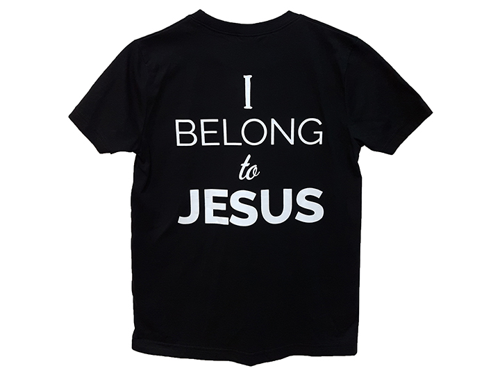 This t-shirt features 'Christ for all Nations' on the front and 'I belong to Jesus' boldly at the back.